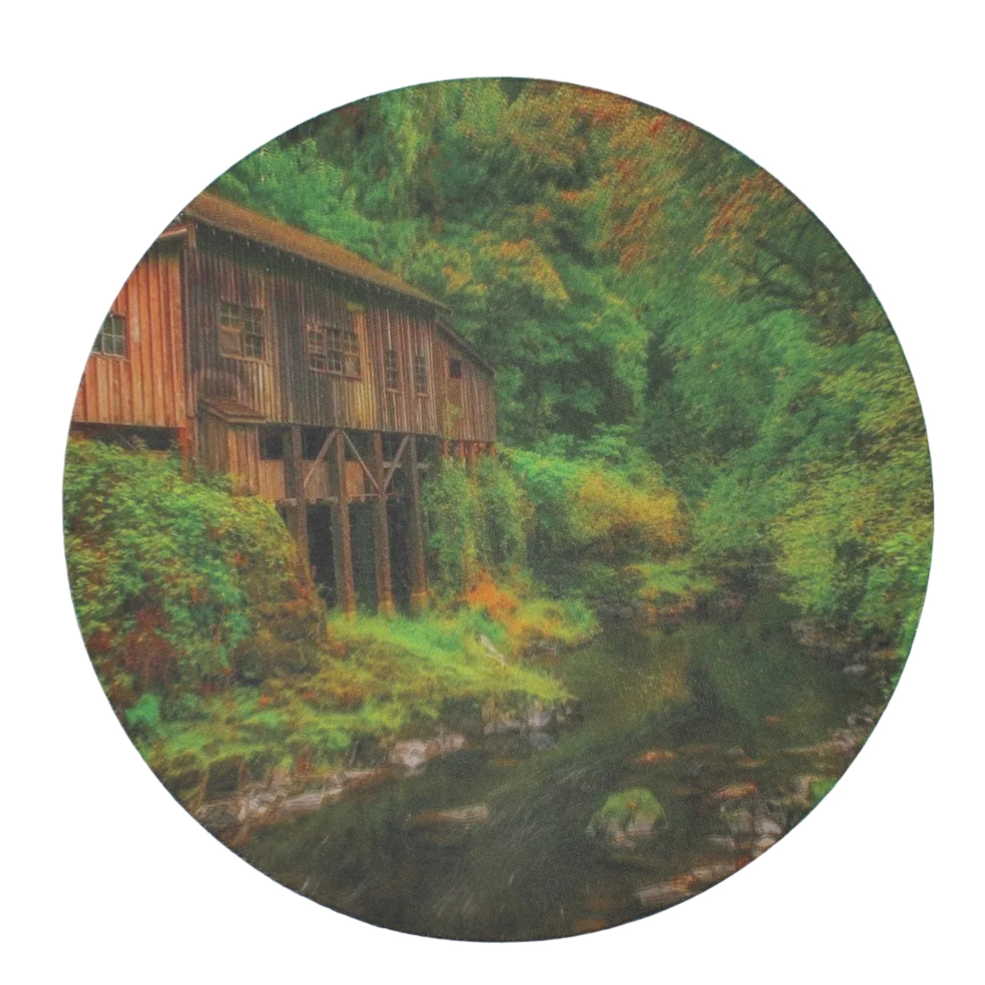 Bring peaceful countryside charm to your workspace with this beautifully illustrated mouse pad featuring a classic wooden covered bridge set beside a gently flowing stream. Tall forest trees surround the scene, creating a calm, rustic atmosphere that feels like a quiet escape into nature. The smooth surface ensures effortless mouse movement, while the rich, detailed artwork adds warmth and serenity to any desk. Perfect for nature lovers, outdoor enthusiasts, or anyone who enjoys a touch of rustic beauty in their daily routine.